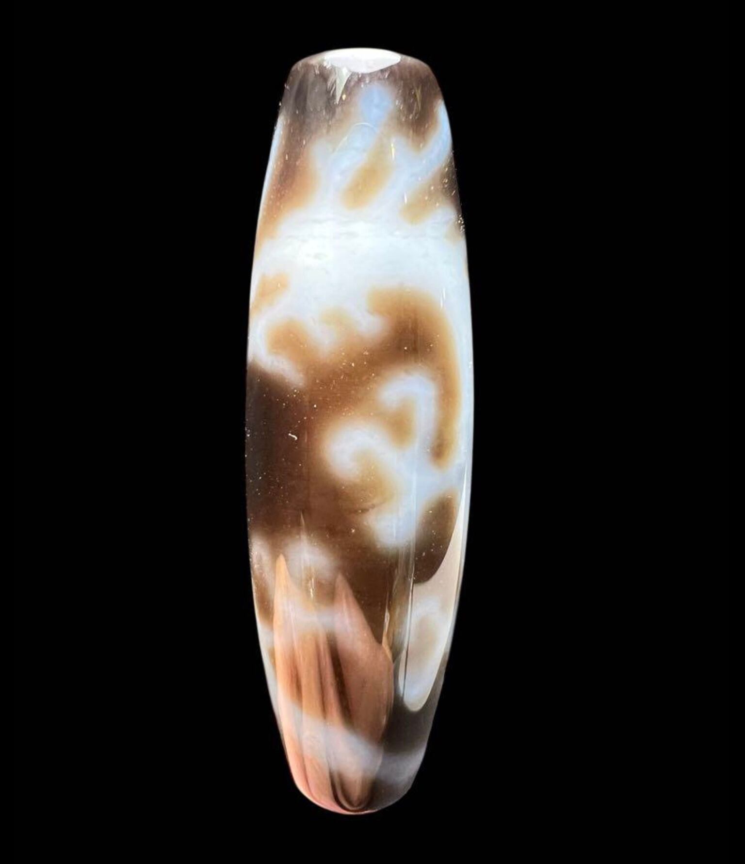 チベット西蔵から各地に伝わったことから、中国【西蔵天珠】と呼ばれています。メノウ、玉髄、カーネリアンなどを円筒形に加工し、表面に吉祥文様を焼き付けてます