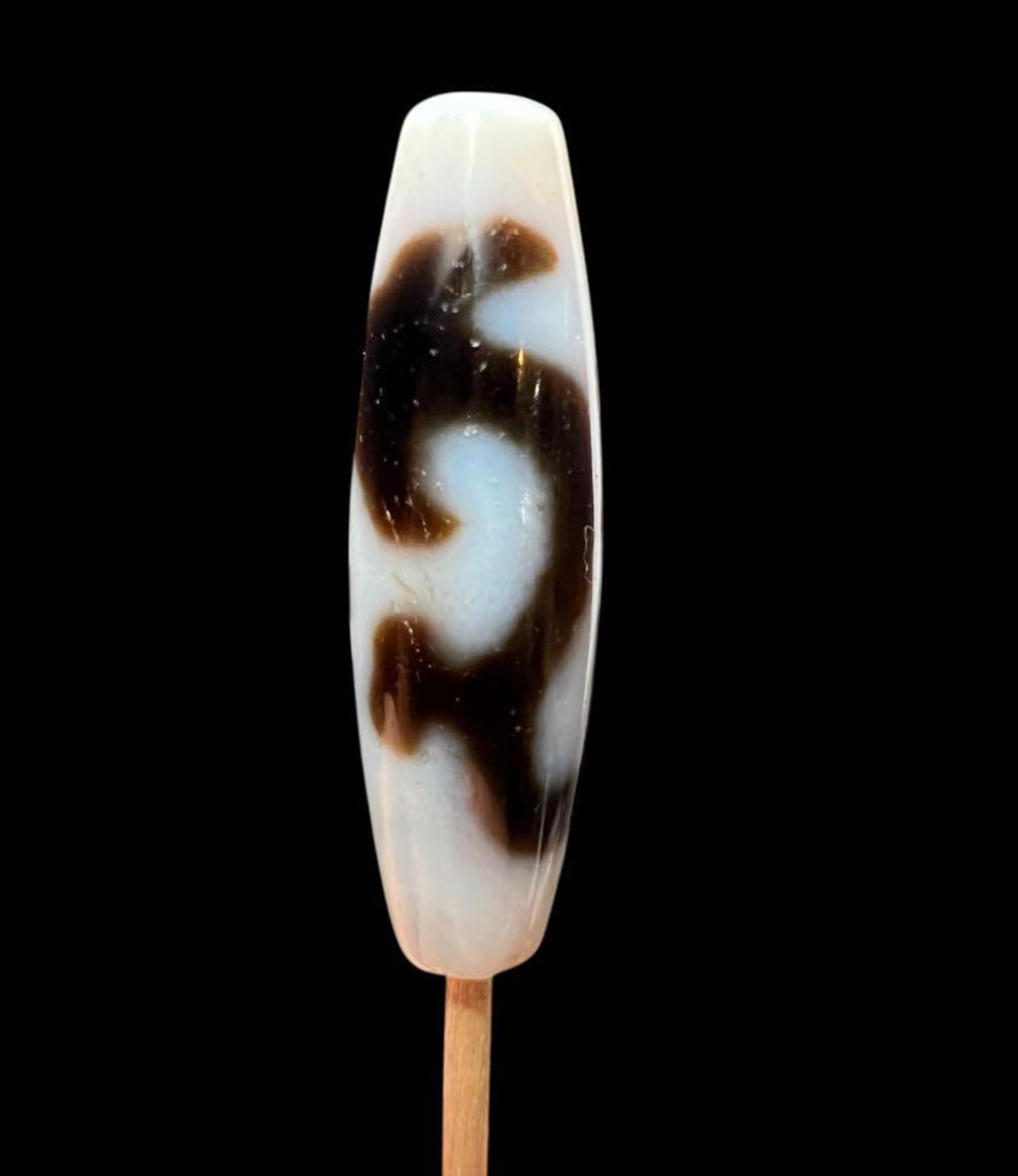 チベット西蔵から各地に伝わったことから、中国【西蔵天珠】と呼ばれています。メノウ、玉髄、カーネリアンなどを円筒形に加工し、表面に吉祥文様を焼き付けてます