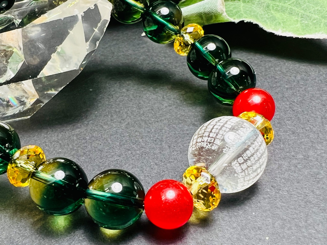 幸福呼呼ぶ奇石 秘紅石&黄緑水晶ブレス 財運✨金運up ラッキー❗️
