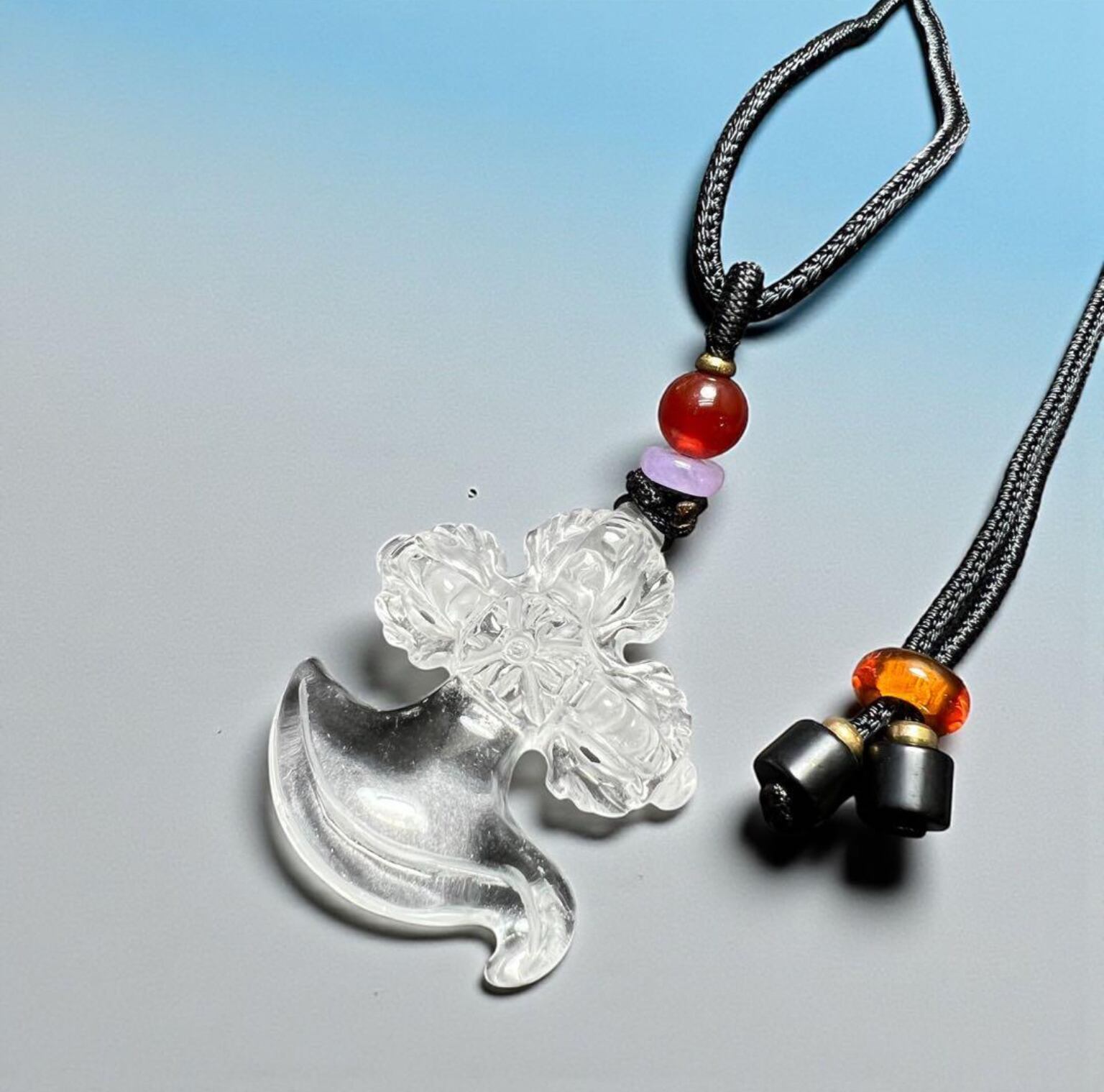 水晶カルタリ(曲刀・宝斧)ネックレス 密教法器 結界張って 魔除け 幸福呼ぶ奇石