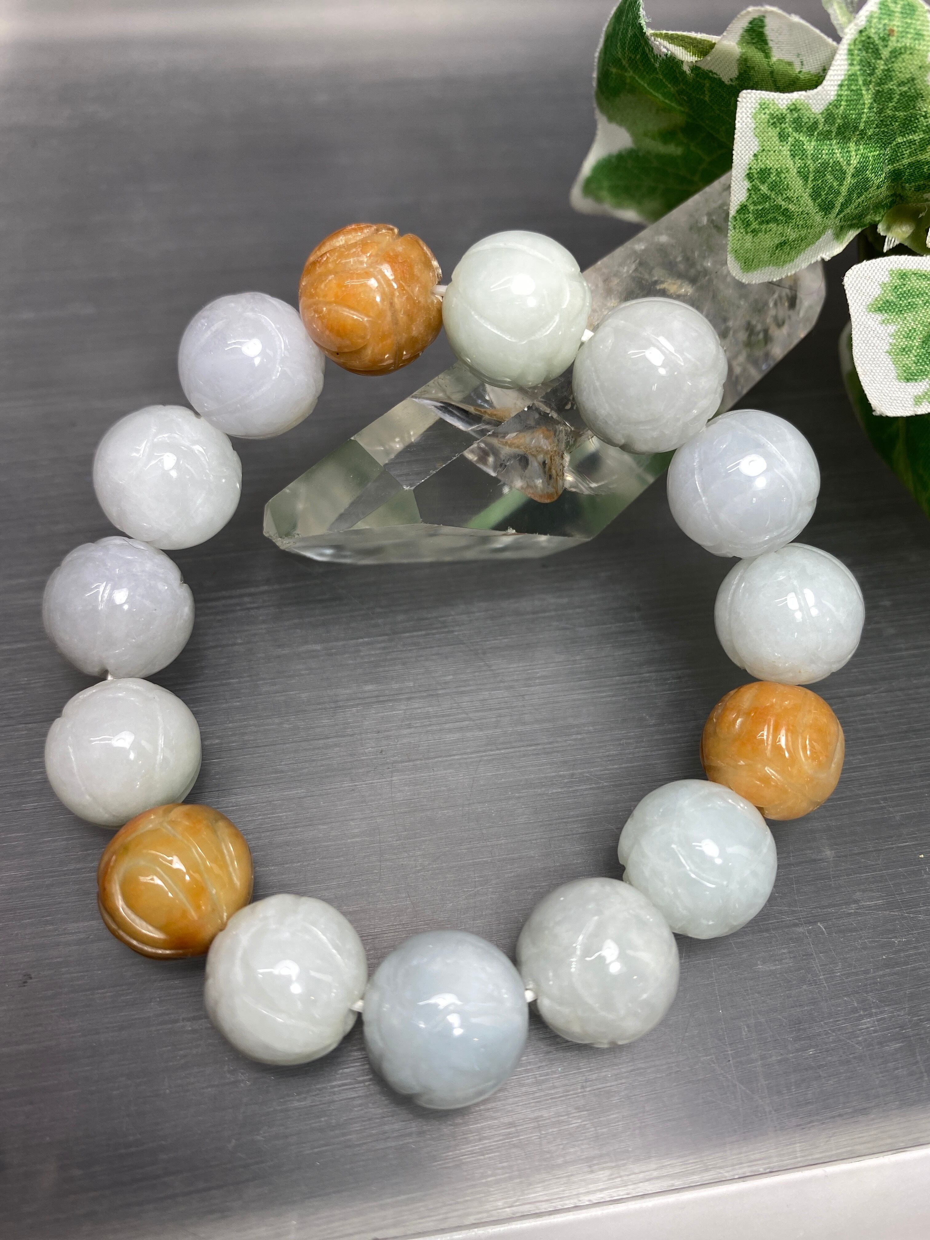 翡翠蓮花彫りブレスレット ストレス解消、病魔退散、心の浄化❣️