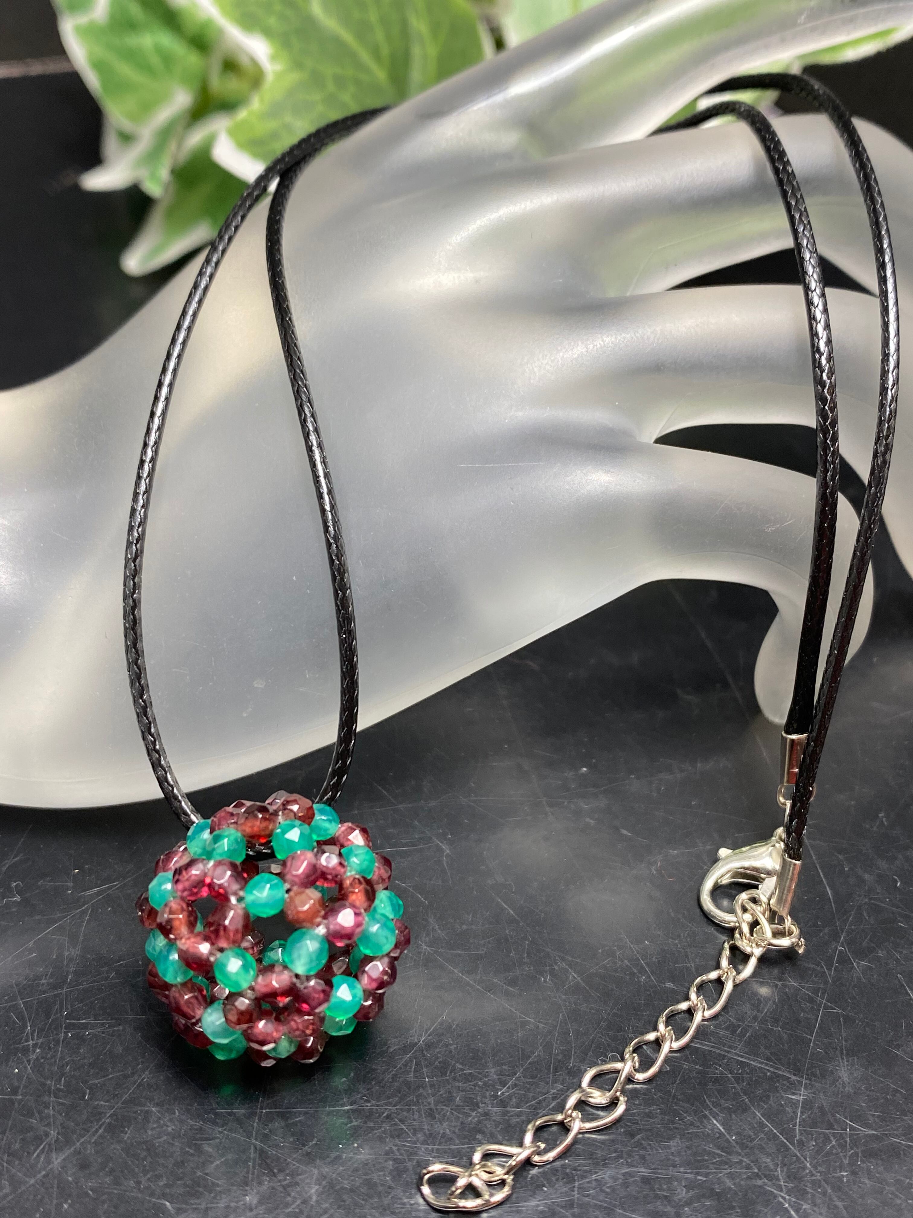 3mmロードライトガーネットと緑アゲート✨フラーレンネックレス❣️宇宙エネルギー✨