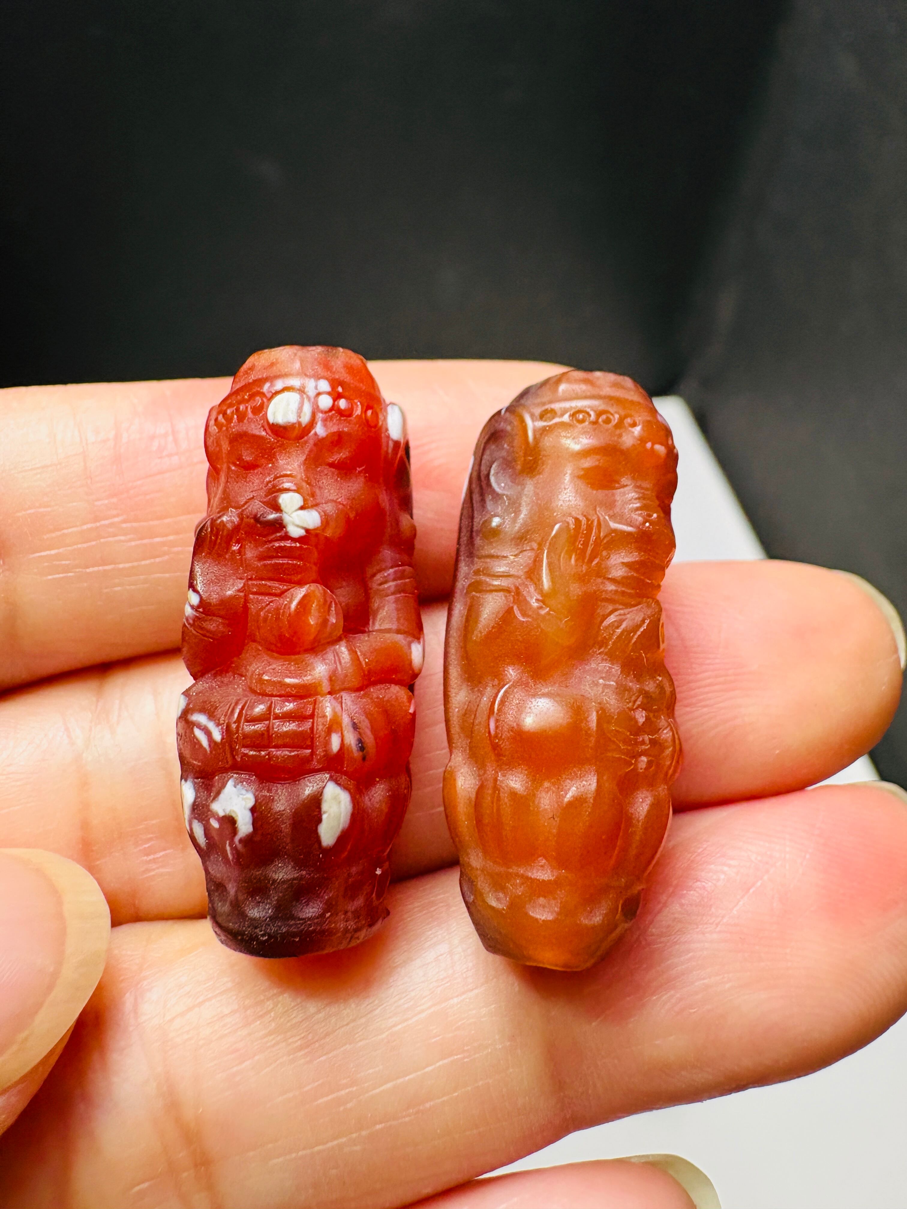 ガネーシャ彫り天珠パーツ 天然瑪瑙 商売繁盛 お金 開運 学問 幸福の神象 2個セット❣️