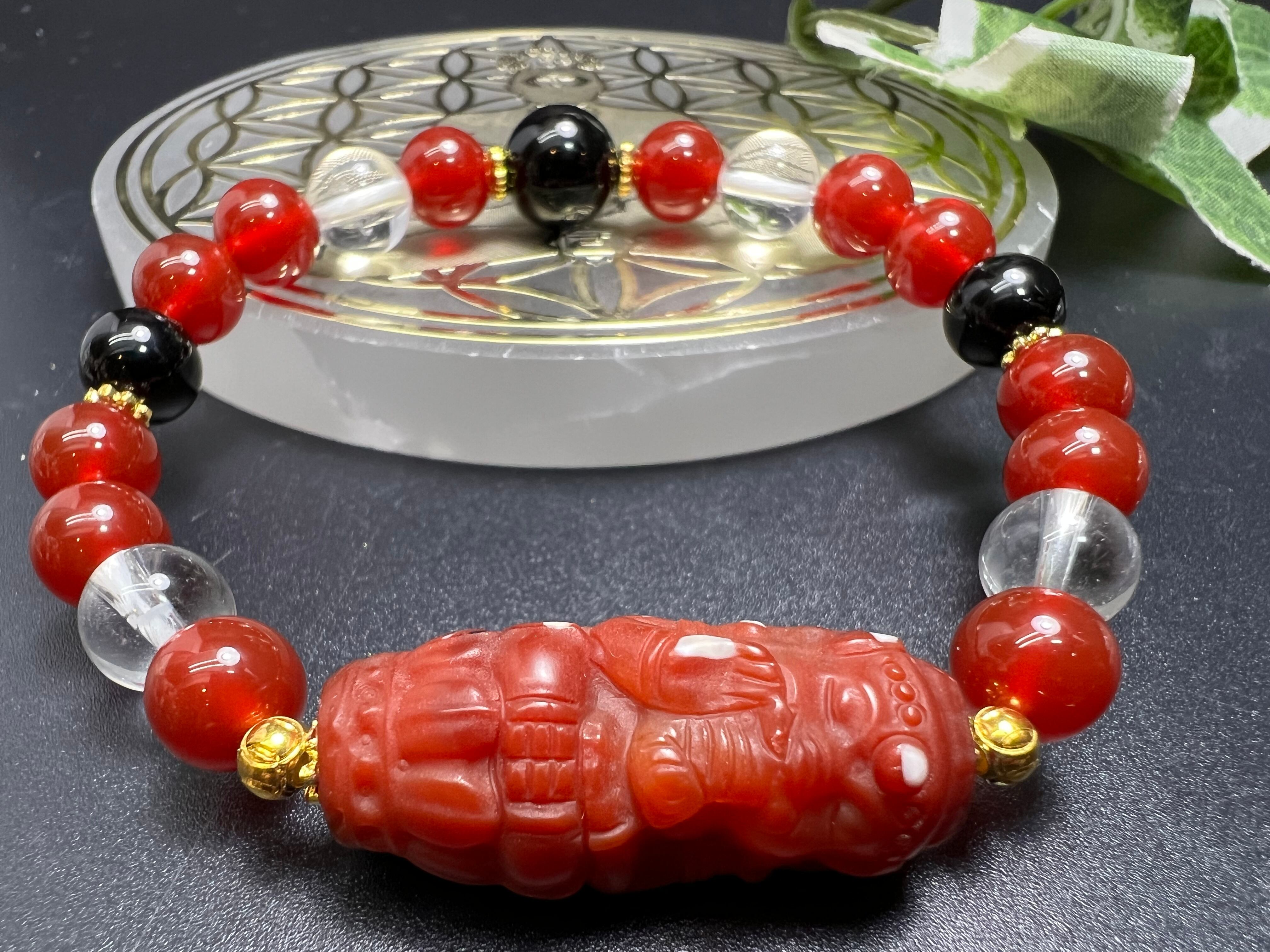 ガネーシャ彫り天珠ブレスレット 天然瑪瑙 商売繁盛 お金 開運 学問 幸福の神象