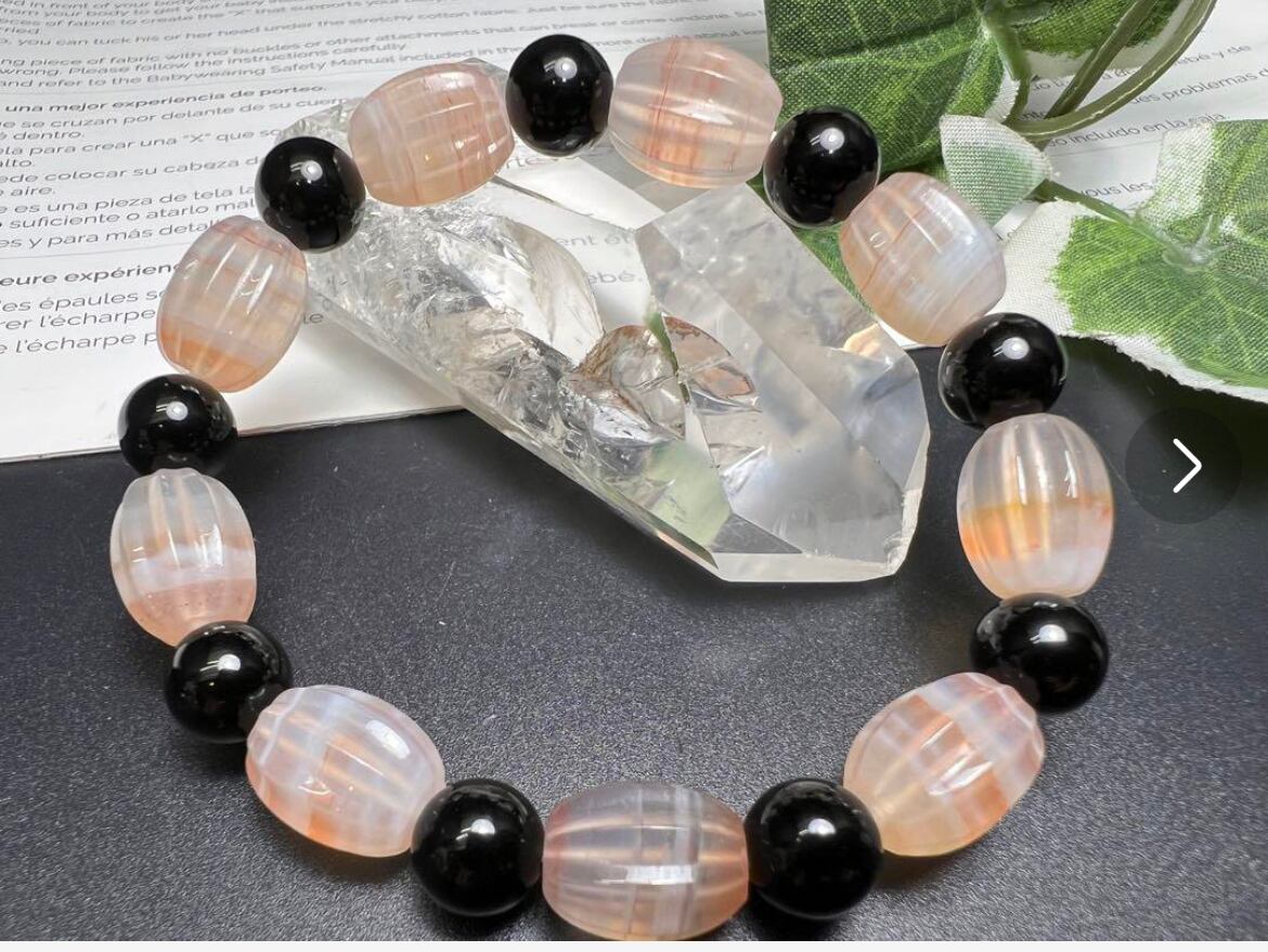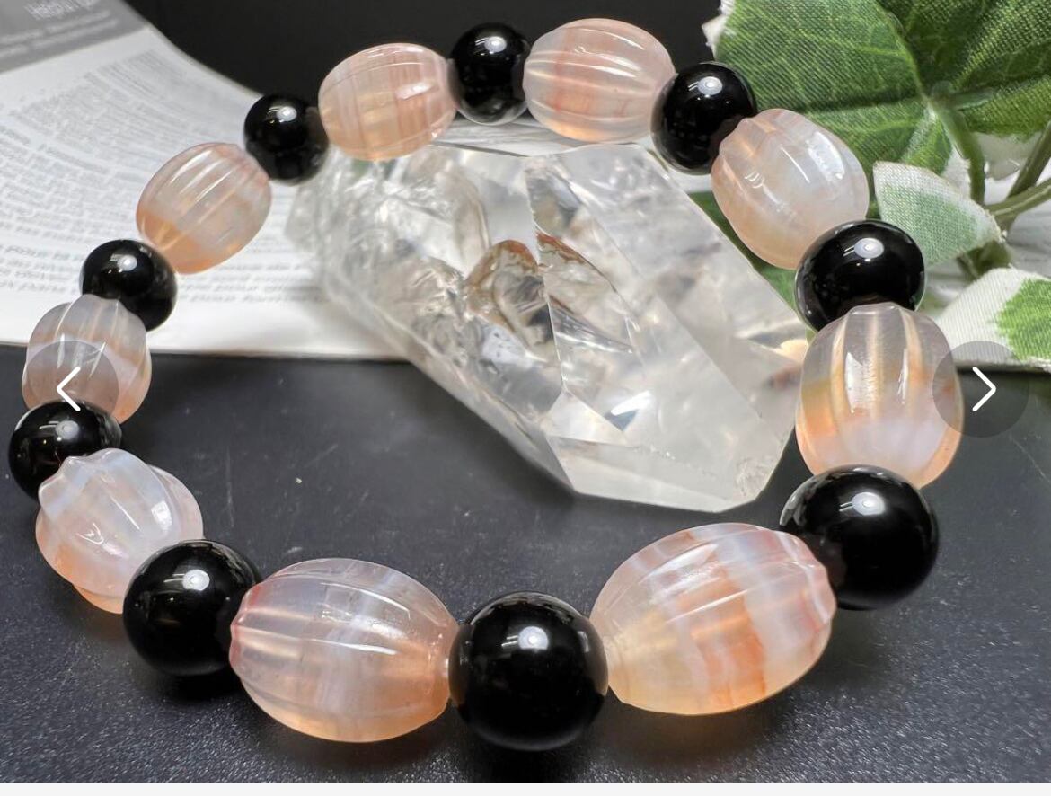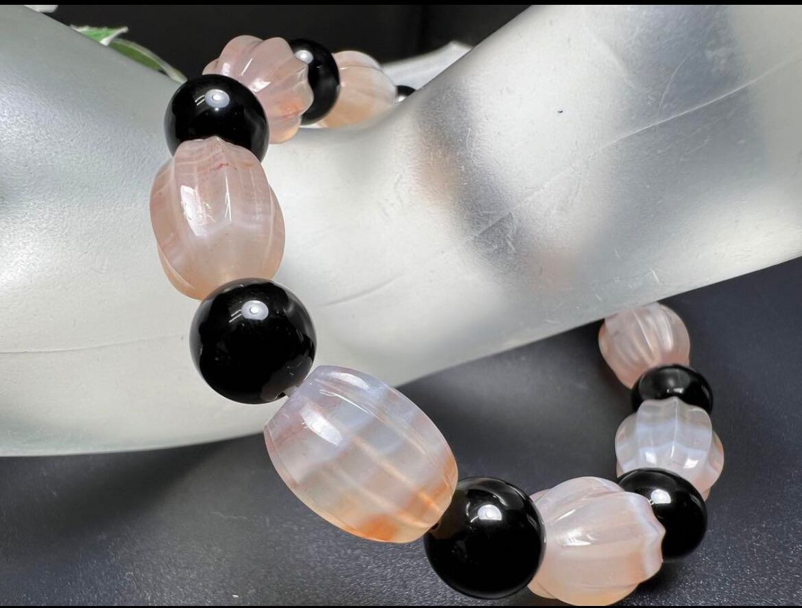 花模様瑪瑙西瓜カットとオニキスブレスレット❣️健康長寿 家庭円満 交通安全‼️