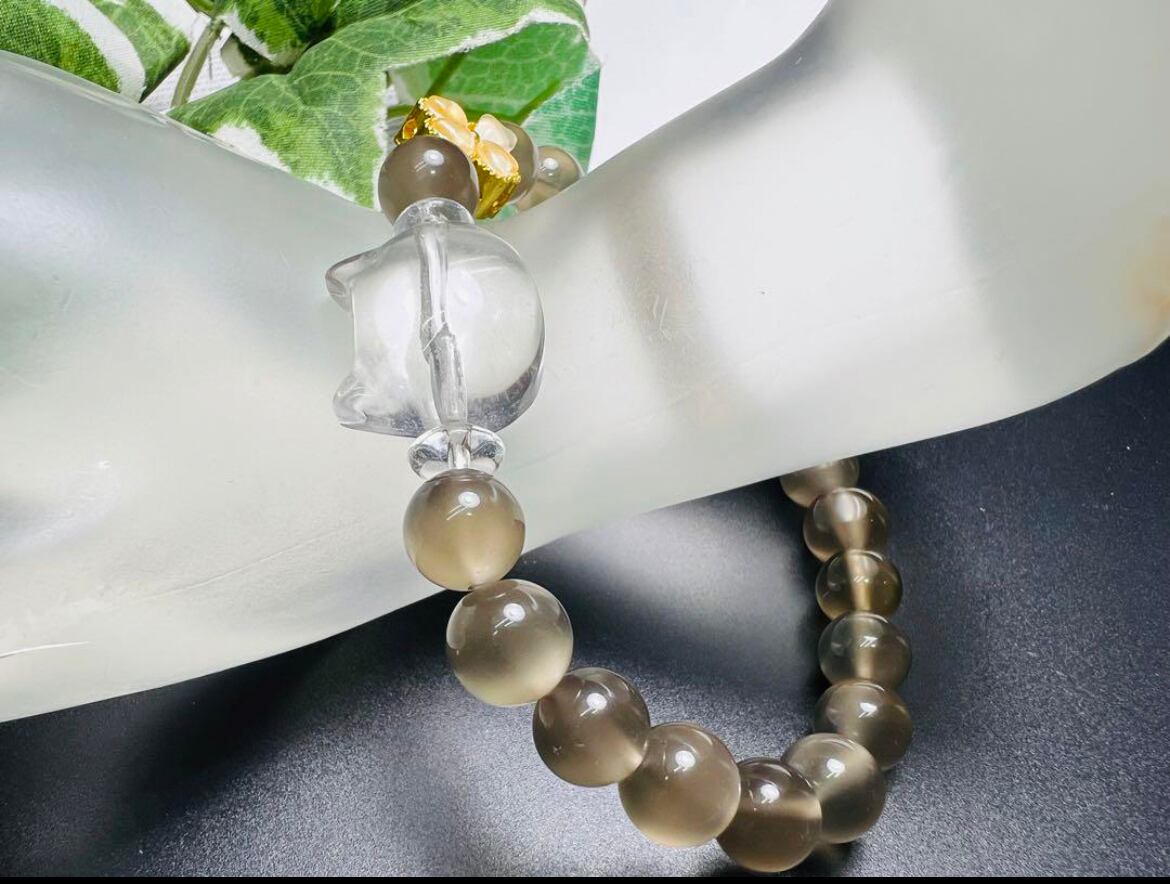 ブラックムーンストーンと水晶猫彫り 可愛い お洒落❣️
