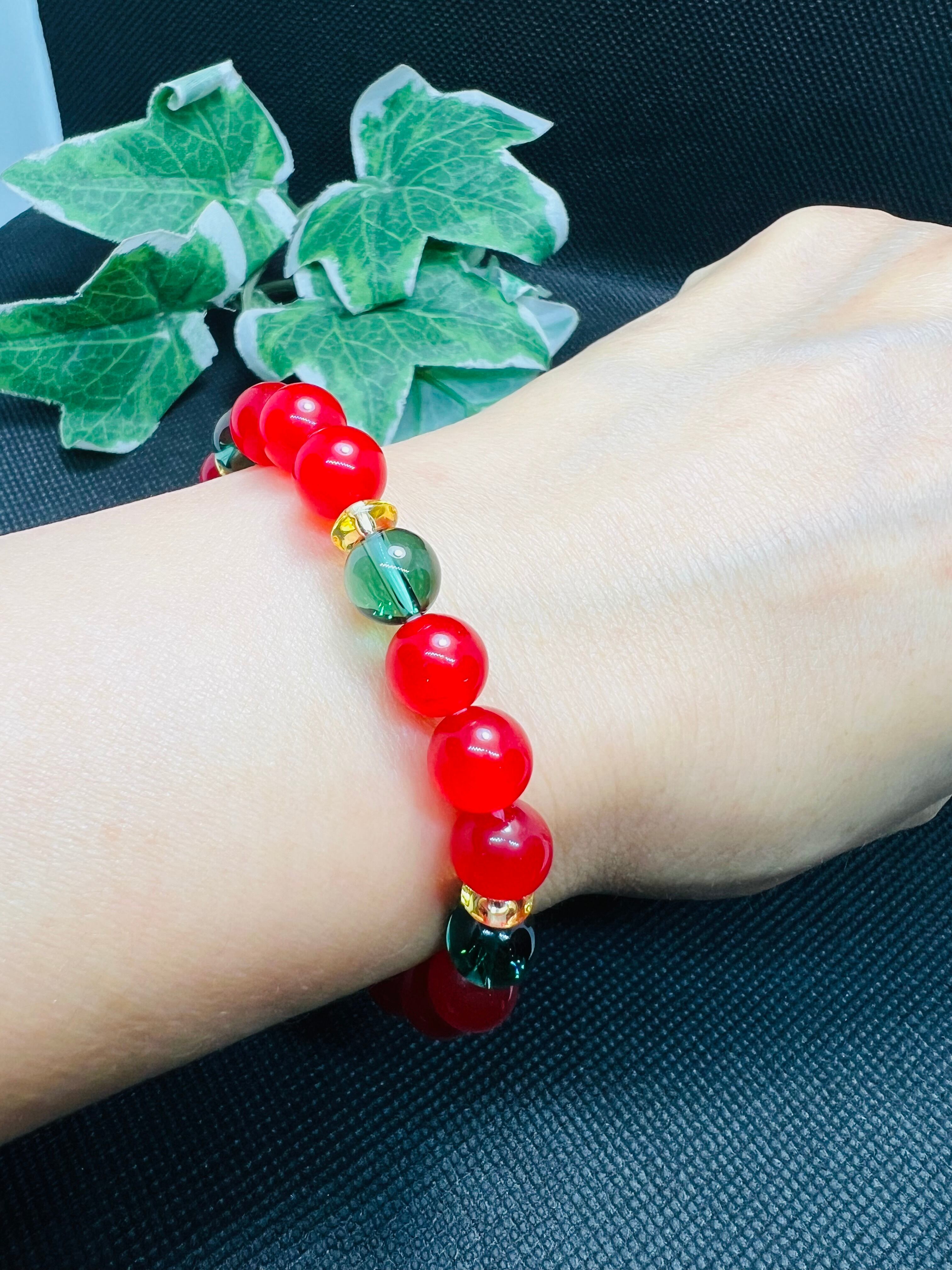 幸福呼ぶ奇石❣️緑水晶&秘紅石ブレスレット金運アップ 臨時收入 薔薇色人生❣️